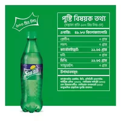 Ingredients: Carbonated Water, Sugar, Citric Acid, Malic Acid, Acidity Regulator (Sodium Gluconate), Natural Lemon-Lime Flavourings, Sweetener (Steviol Glycosides).